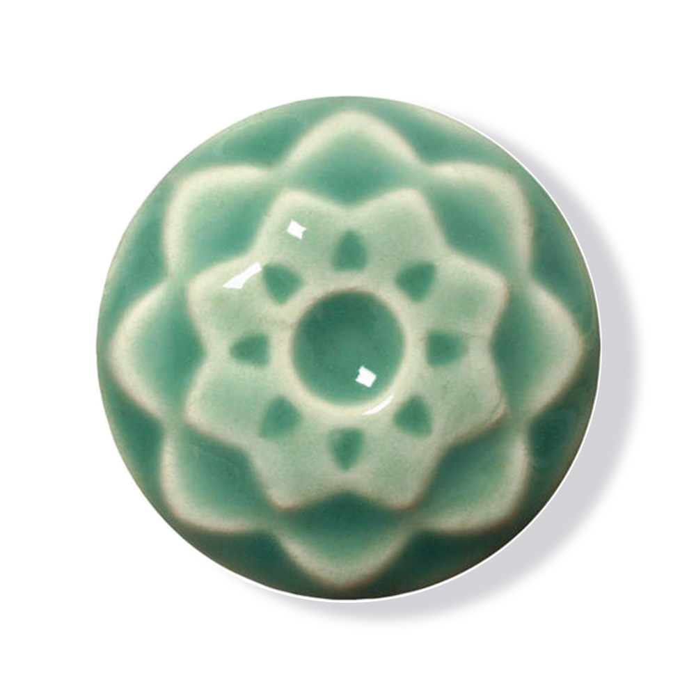 This 100% mixable celadon glaze is a light, glossy blue-green that pools darker turquoise and accents textured ware like the ancient glazes it is created to imitate.
