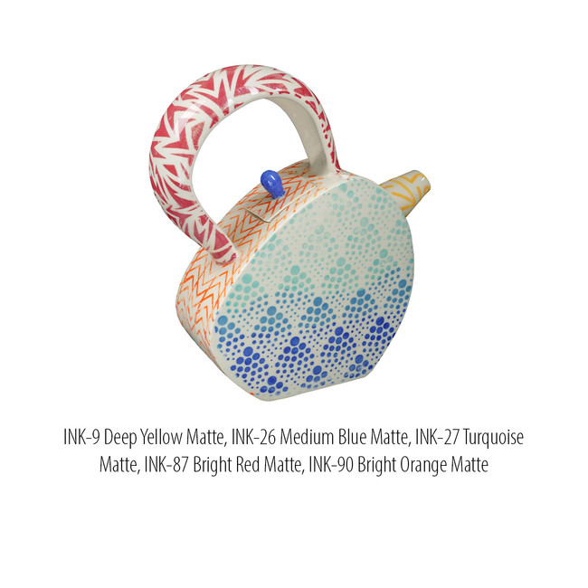 Like an underglaze, this Turquoise Matte Ink fires to a matte finish that requires a clear glaze to be considered food-safe.